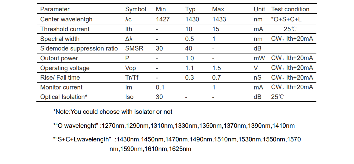1430nm DFB CWDM 激光器组件